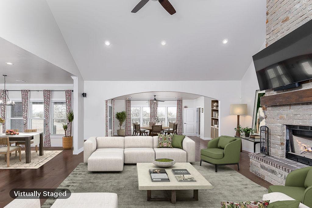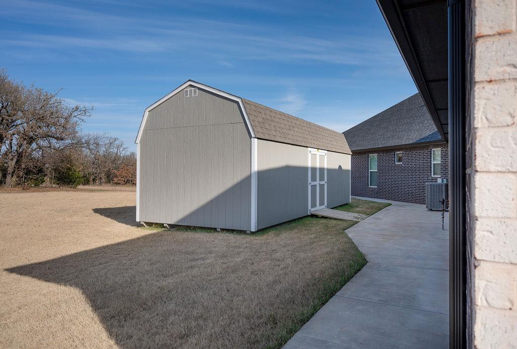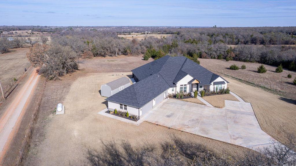 Spread across 11.8 acres of open land with a private lake and sweeping views, this property delivers a level of privacy and versatility that’s increasingly rare, pairing modern comfort with a setting that feels genuinely extraordinary. The gated entrance, full security system, and app-controlled irrigation support a streamlined lifestyle, while soaring 18' vaulted ceilings with an exposed beam anchor the main living area with striking architectural presence. The kitchen elevates everyday cooking with a commercial-grade Frigidaire fridge/freezer, Zline oven and range, built-in drawer microwave, and granite surfaces built for durability and style. A theater/flex room, dedicated office with French doors, mudroom with built-in desk and secondary fridge, foam insulation, and a tankless hot water heater contribute to effortless functionality throughout the home. Recent enhancements bring even more value, including upgraded exterior finishes, new garage carpeting, an improved French drain system, refreshed interior elements in the main gathering area, and both fireplaces converted to clean-lined electric for a modern ambiance. The property also includes a 12' x 28' storage barn for tools, equipment, or hobby space, and its location delivers surprising convenience—just minutes to Tinker Air Force Base, 5 minutes to the Turnpike, and a quick 20-minute drive to downtown OKC, plus easy access to Walmart, Homeland, and Crest delivery service. Don’t miss the opportunity to create a lifestyle centered around space, privacy, and the freedom to design your surroundings—whether for recreation, hobbies, or simply enjoying your own acreage without compromise. For buyers seeking something beyond the typical neighborhood experience, this property offers a rare chance to claim a place that truly stands apart.
