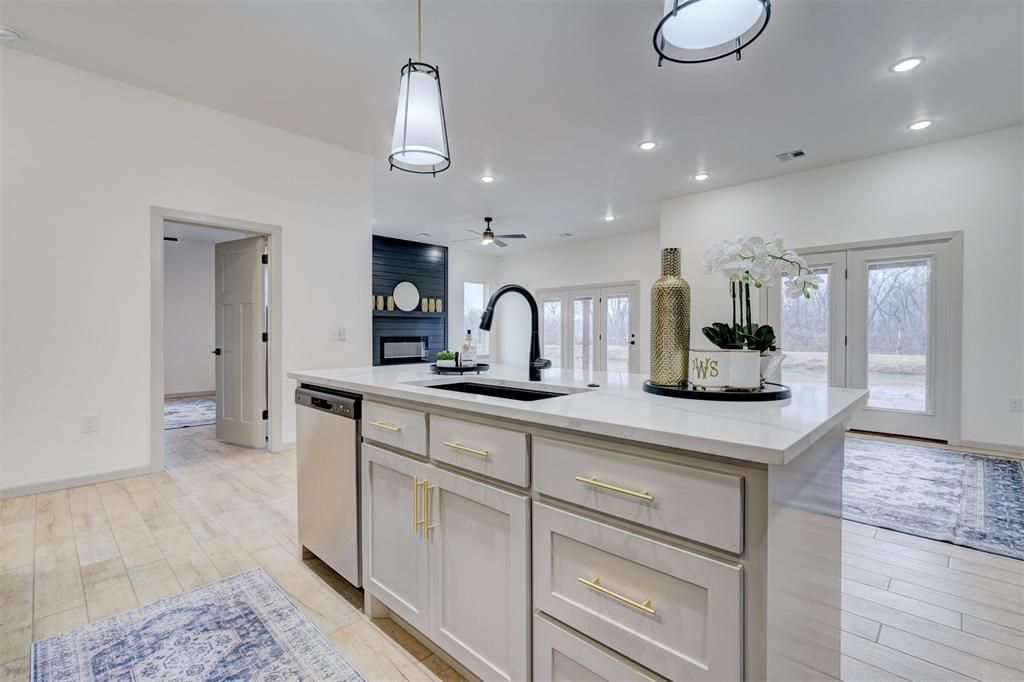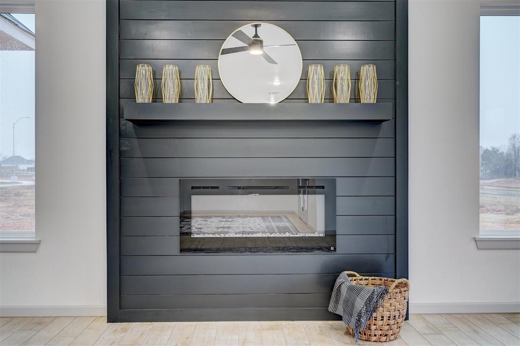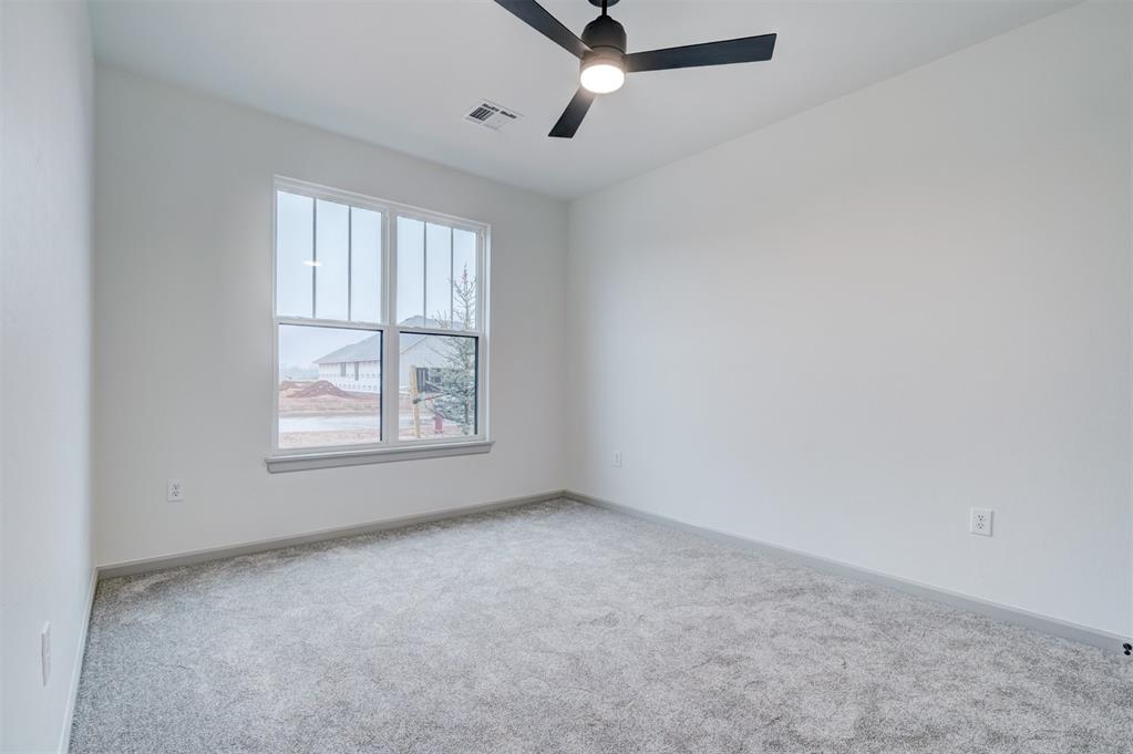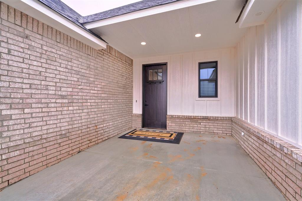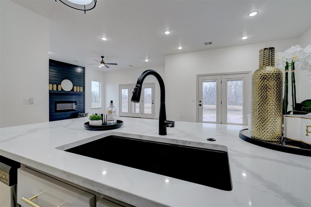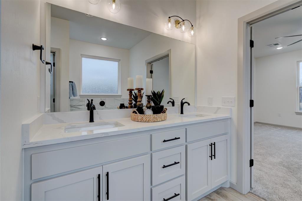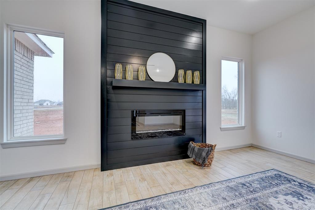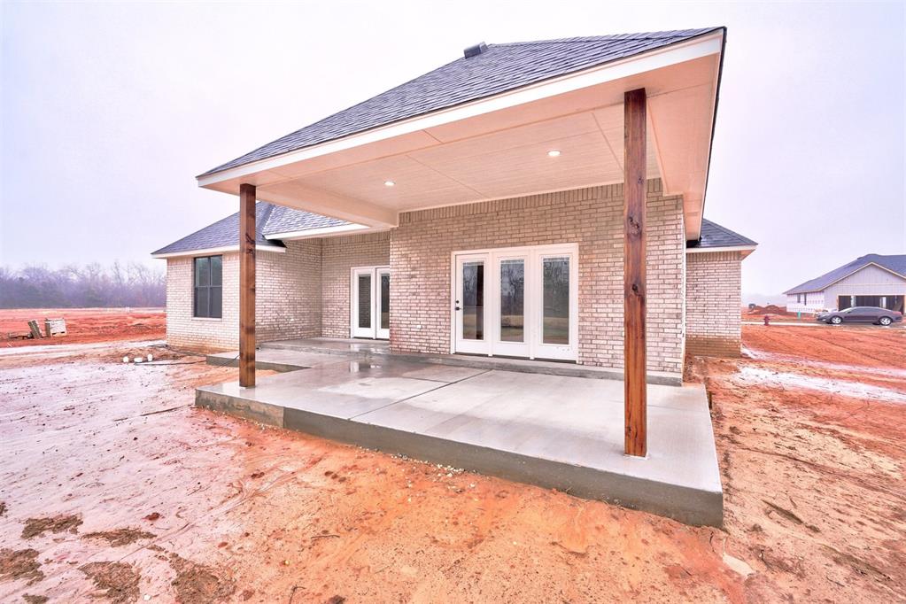 Step into this beautifully designed modern farmhouse by Greg Brown Homes, perfectly located in Trails End Addition and within the highly sought-after North Rock Creek School District. This 4-bedroom, 2.5-bath home blends style and function with wood-look tile floors throughout all living areas, creating a warm yet durable space for everyday living. The open-concept living, dining, and kitchen is an entertainer’s dream, featuring a huge island, pantry, built-in oven, gas cooktop, microwave, and sleek quartz countertops. Brushed gold hardware adds a touch of elegance, while a wall of glass doors invites natural light and leads to the expansive covered patio overlooking the pond—perfect for relaxing or entertaining. The primary suite is a luxurious retreat, offering a spa-like ensuite bath with a freestanding soaking tub, oversized walk-in shower, and double vanities. A spacious walk-in closet completes the suite. The huge laundry room is thoughtfully designed with a black granite farmhouse sink, ample storage cabinets, and a built-in mudroom bench. A stylish powder room provides convenience for guests. Additional highlights include a 9-foot entry door on the large front porch, a 3-car garage with a triple driveway, and easy access to I-40 (just 1 minute away)—making Tinker AFB (30 min) and Bricktown (35 min) a breeze to reach. Don’t miss this opportunity to own a thoughtfully designed new home in a prime location. Schedule your showing today!