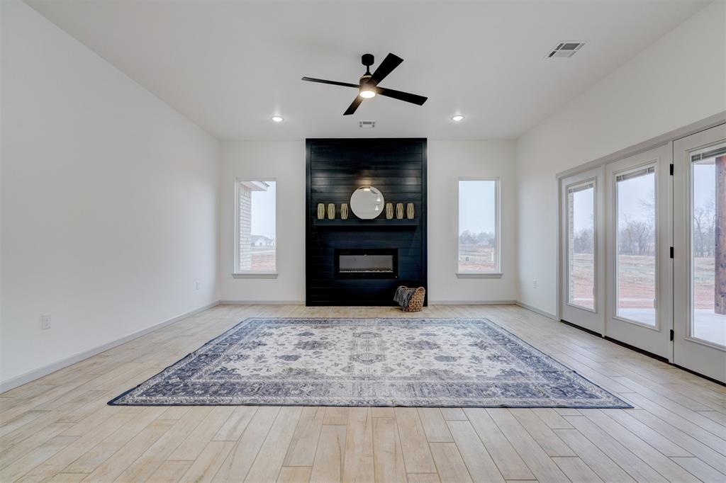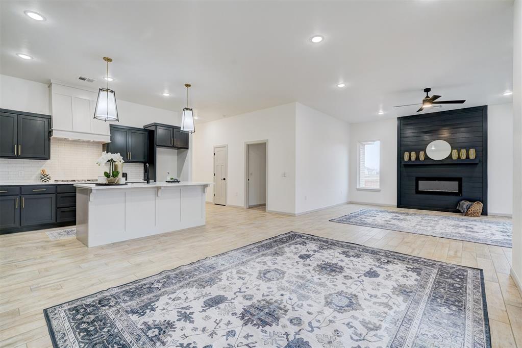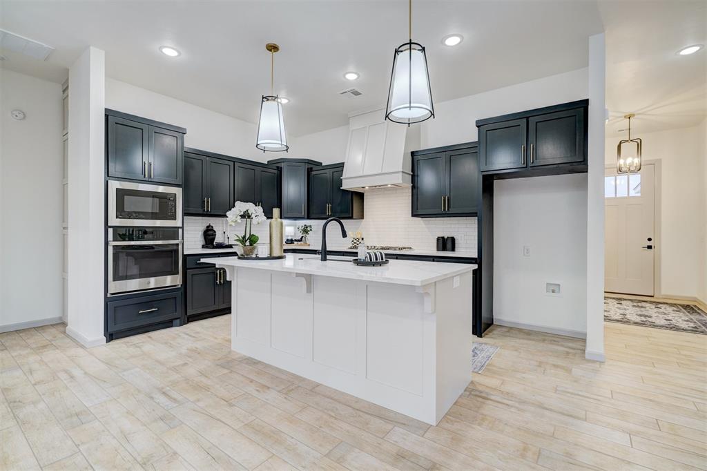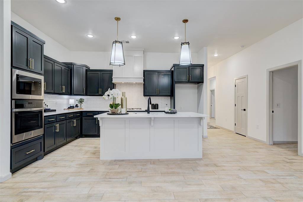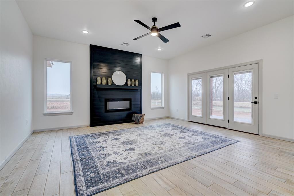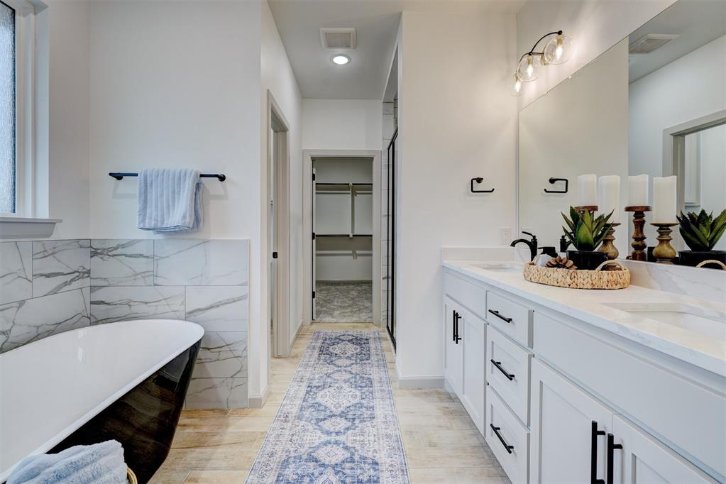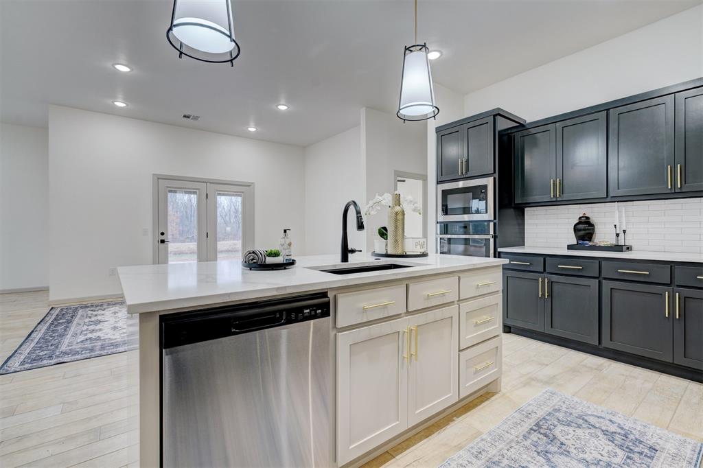Step into this beautifully designed modern farmhouse by Greg Brown Homes, perfectly located in Trails End Addition and within the highly sought-after North Rock Creek School District. This 4-bedroom, 2.5-bath home blends style and function with wood-look tile floors throughout all living areas, creating a warm yet durable space for everyday living. The open-concept living, dining, and kitchen is an entertainer’s dream, featuring a huge island, pantry, built-in oven, gas cooktop, microwave, and sleek quartz countertops. Brushed gold hardware adds a touch of elegance, while a wall of glass doors invites natural light and leads to the expansive covered patio overlooking the pond—perfect for relaxing or entertaining. The primary suite is a luxurious retreat, offering a spa-like ensuite bath with a freestanding soaking tub, oversized walk-in shower, and double vanities. A spacious walk-in closet completes the suite. The huge laundry room is thoughtfully designed with a black granite farmhouse sink, ample storage cabinets, and a built-in mudroom bench. A stylish powder room provides convenience for guests. Additional highlights include a 9-foot entry door on the large front porch, a 3-car garage with a triple driveway, and easy access to I-40 (just 1 minute away)—making Tinker AFB (30 min) and Bricktown (35 min) a breeze to reach. Don’t miss this opportunity to own a thoughtfully designed new home in a prime location. Schedule your showing today!