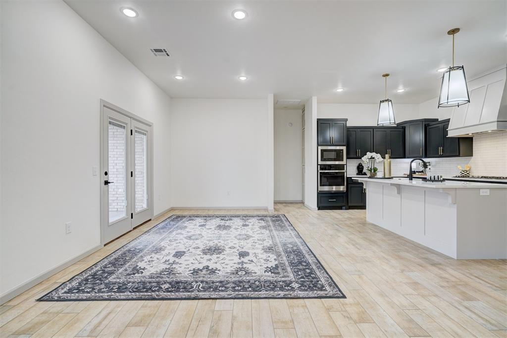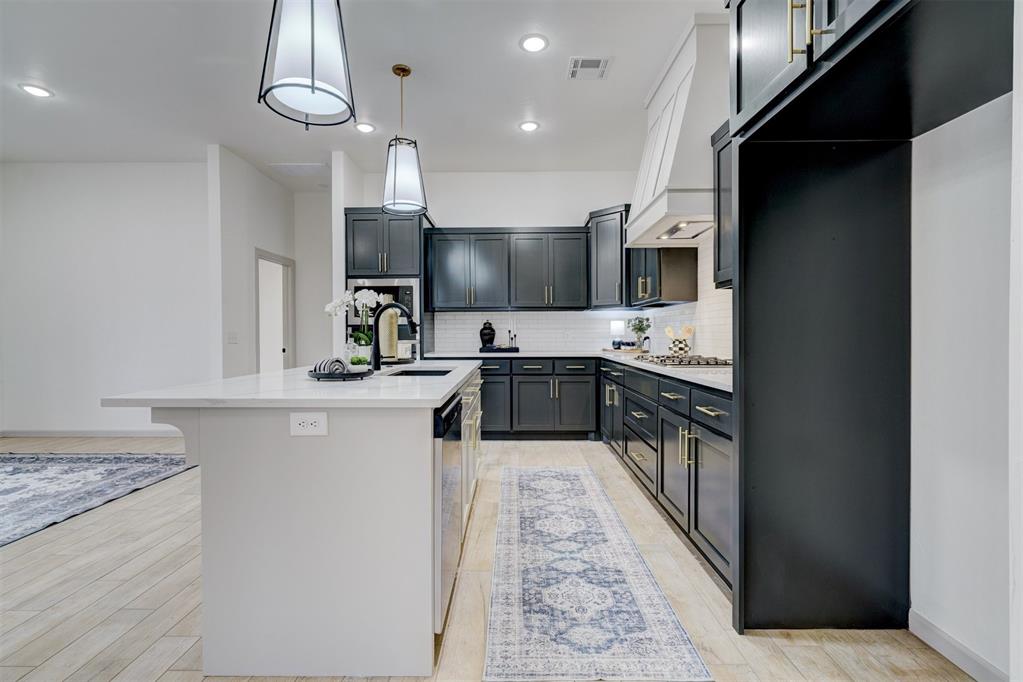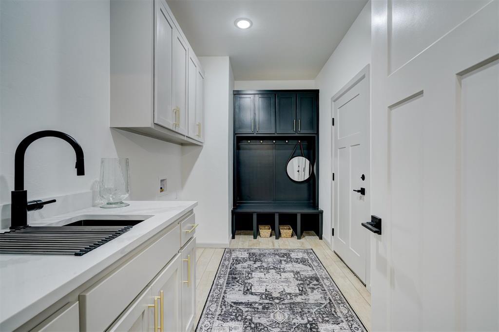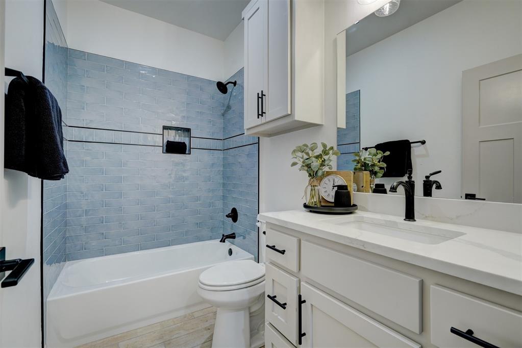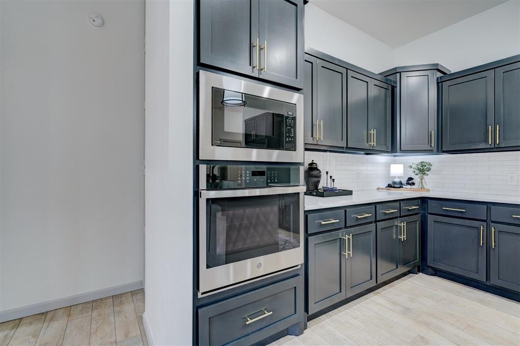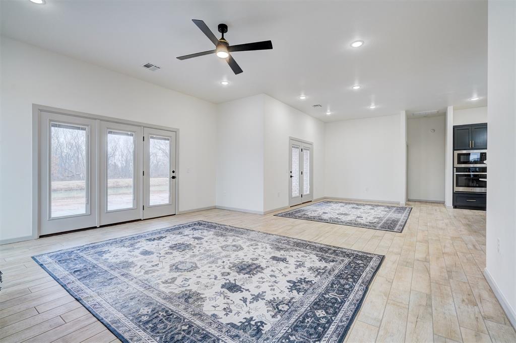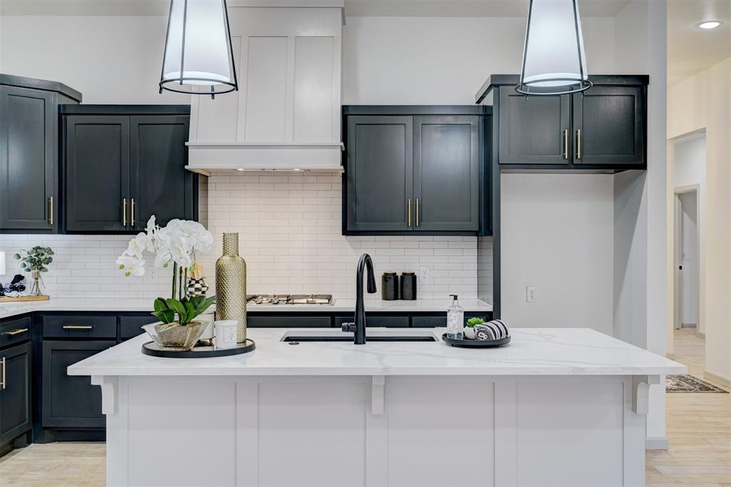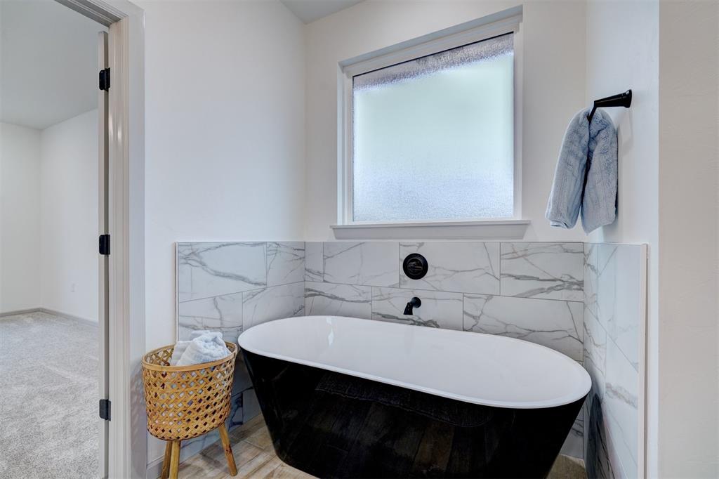 Step into this beautifully designed modern farmhouse by Greg Brown Homes, perfectly located in Trails End Addition and within the highly sought-after North Rock Creek School District. This 4-bedroom, 2.5-bath home blends style and function with wood-look tile floors throughout all living areas, creating a warm yet durable space for everyday living. The open-concept living, dining, and kitchen is an entertainer’s dream, featuring a huge island, pantry, built-in oven, gas cooktop, microwave, and sleek quartz countertops. Brushed gold hardware adds a touch of elegance, while a wall of glass doors invites natural light and leads to the expansive covered patio overlooking the pond—perfect for relaxing or entertaining. The primary suite is a luxurious retreat, offering a spa-like ensuite bath with a freestanding soaking tub, oversized walk-in shower, and double vanities. A spacious walk-in closet completes the suite. The huge laundry room is thoughtfully designed with a black granite farmhouse sink, ample storage cabinets, and a built-in mudroom bench. A stylish powder room provides convenience for guests. Additional highlights include a 9-foot entry door on the large front porch, a 3-car garage with a triple driveway, and easy access to I-40 (just 1 minute away)—making Tinker AFB (30 min) and Bricktown (35 min) a breeze to reach. Don’t miss this opportunity to own a thoughtfully designed new home in a prime location. Schedule your showing today!